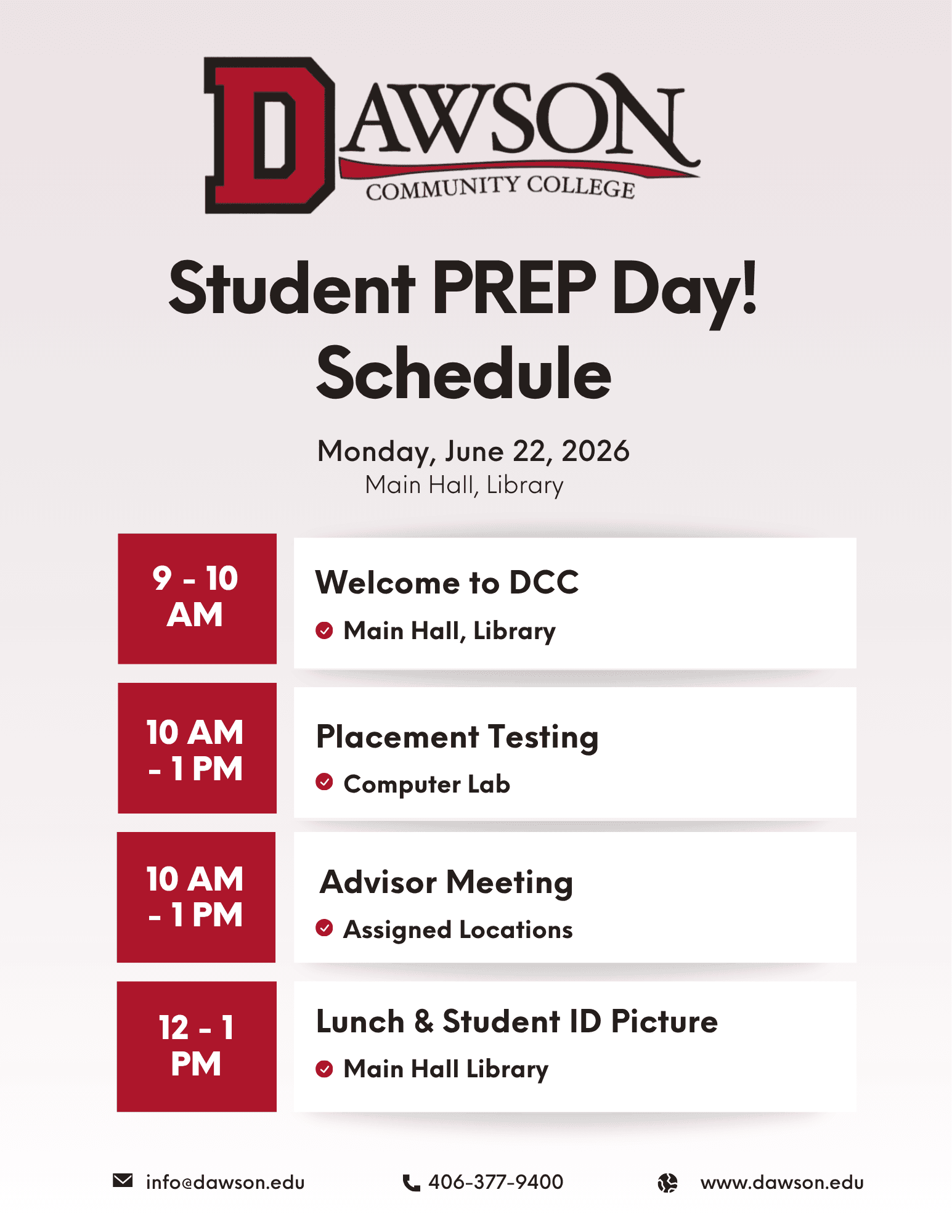 Student PREP Days are designed to help incoming freshmen and transfer students hit the ground running at Dawson Community College. During PREP Day, you will: